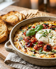 Hot Caprese Dip with Roasted Tomatoes & Burrata